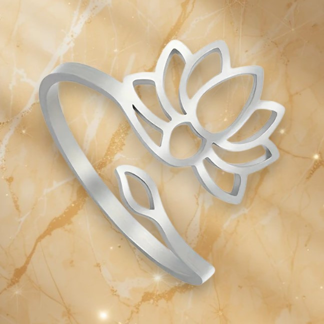 Срібляста каблучка в богемному стилі у вигляді лотоса з нержавіючої сталі. Регульований розмір. Підходить для повсякденного носіння або як подарунок. Дизайн з лотосом у богемному стилі. Нержавіюча сталь стійка до корозії, не темніє, водостійка, гіпоалергенна та доступна за ціною.